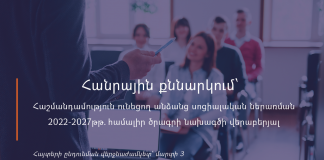 Հանրային քննարկում՝ «Հաշմանդամություն ունեցող անձանց սոցիալական ներառման 2022-2027թթ․ համալիր ծրագրի» նախագծի...