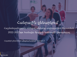 Հանրային քննարկում՝ «Հաշմանդամություն ունեցող անձանց սոցիալական ներառման 2022-2027 թթ․համալիր ծրագրի» նախագծի վերաբերյալ