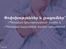 Փոփոխություններ և լրացումներ՝ «Պետական կենսաթոշակների մասին» և «Պետական նպաստների մասին» օրենքներում