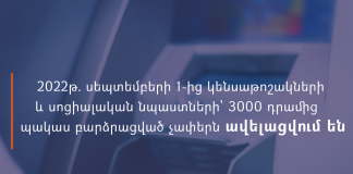 2022 թվականի սեպտեմբերի 1-ից կենսաթոշակների և սոցիալական նպաստների՝ 3000 դրամից պակաս...